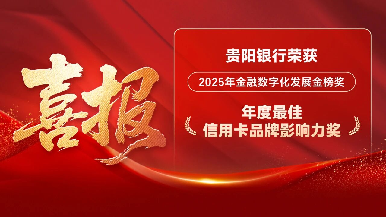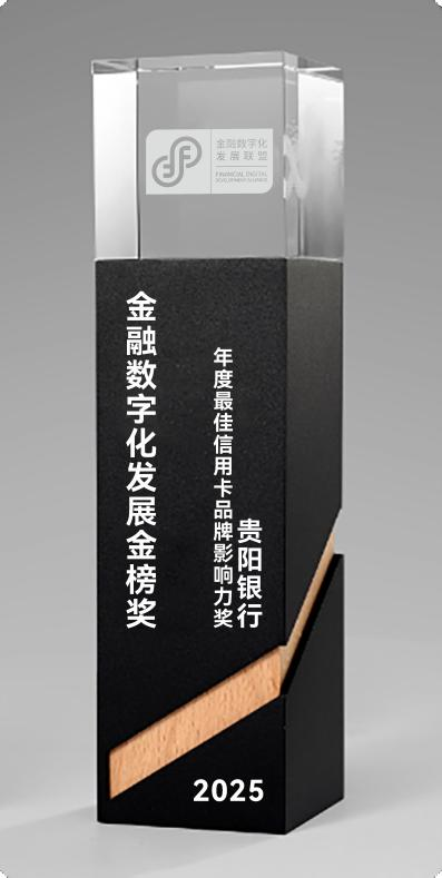 由金融数字化发展联盟组织评选的“2025年金融数字化发展金榜奖”近日正式揭晓,贵阳银行在评选中脱颖而出,荣获“年度最佳信用卡品牌影响力奖”。